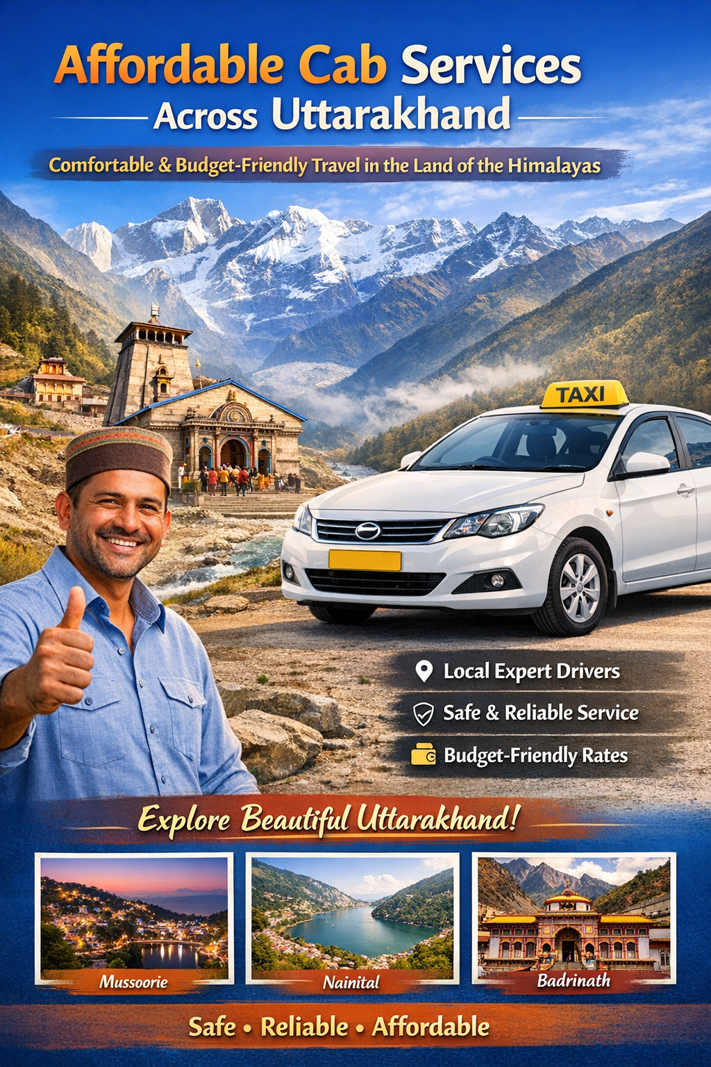 We proudly provide some of the most affordable cab services across Uttarakhand, offering comfortable, reliable, and budget-friendly travel to a wide range of destinations. Our mission is not just to deliver value for money, but to ensure every journey is smooth, enjoyable, and stress-free.